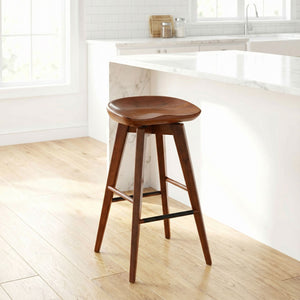 Cortesi Home Tiwi Backless Swivel Barstool in Solid Wood, 29" Walnut