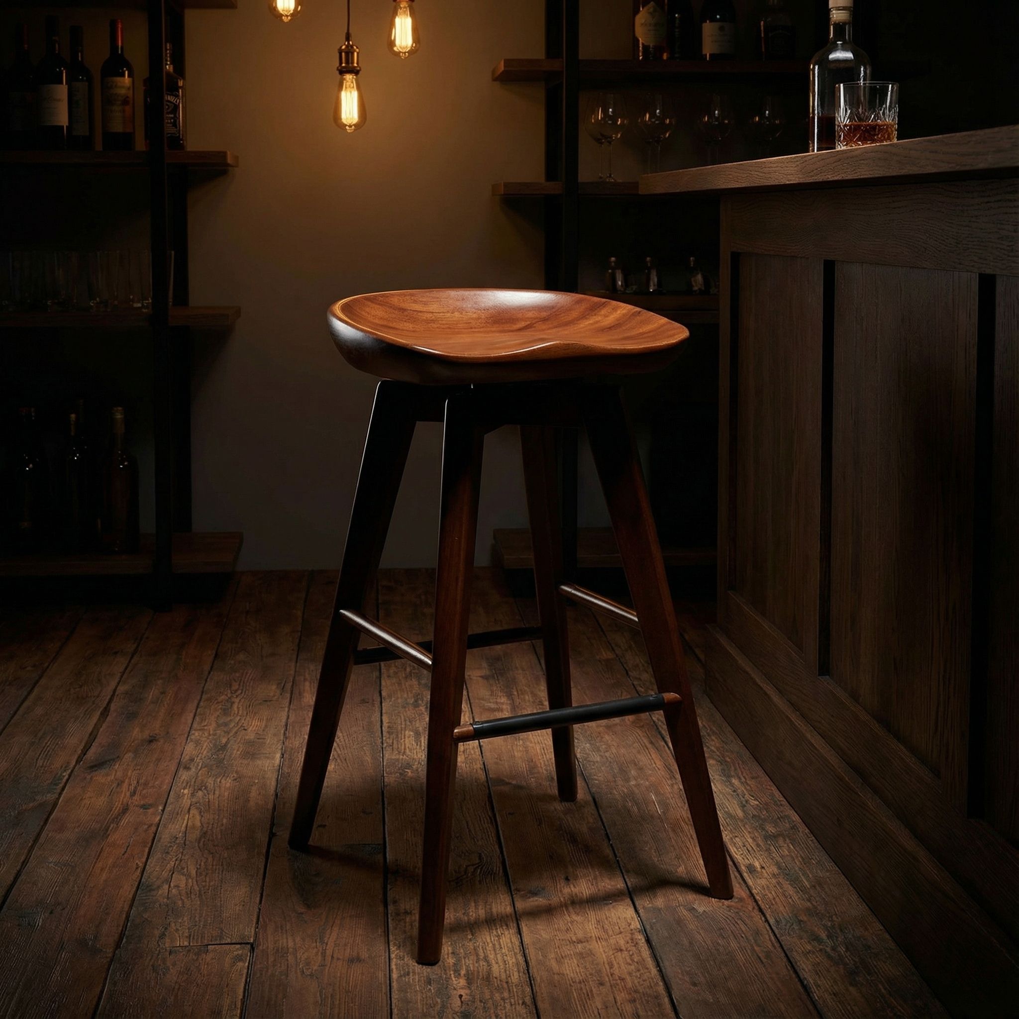 The Cortesi Home Tiwi Swivel Bar Stool is all your living space needs for a rustic yet sophisticated look. Featuring an expertly contoured wooden seat and low foot rail, this counter stool packages comfort and style in one, while the 4 tapered wooden legs offer increased durability and support.