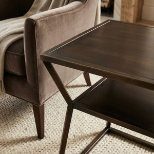 Bare Decor Duplex Accent Table Metal, Distressed Brown Finish, 14x19x19